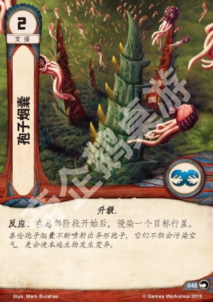 描述泰伦孢子烟囊不断喷射出异形孢子,它们不但会污染空气,更会使本地生物发生变异。